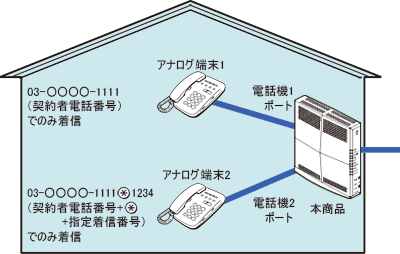 「03-○○○○-1111」でかかってきた場合は、アナログ端末1のみ着信させる。