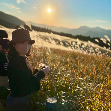 インドアで過ごす日はゲームにハマっています。またSNSで見つけた楽しそうな場所へドライブしたり、美味しいものを食べに行ったりもします。写真は奈良にある、ススキがきれいな曽爾高原を訪ねた時のものです。