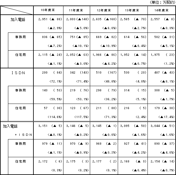 3.INSネット1500は事務用としてINSネット64の10倍で換算。