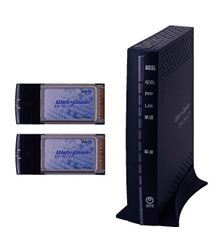「Web Caster 3100SV」と無線LANカード(Web Caster FT−STC−Sa/g)2枚のセットで、無線LANカード1枚は本体に装着して利用します。別途「Web Caster 3100SV」のみでの販売も行います。<販売価格:20,000円(税込21,000円)> |