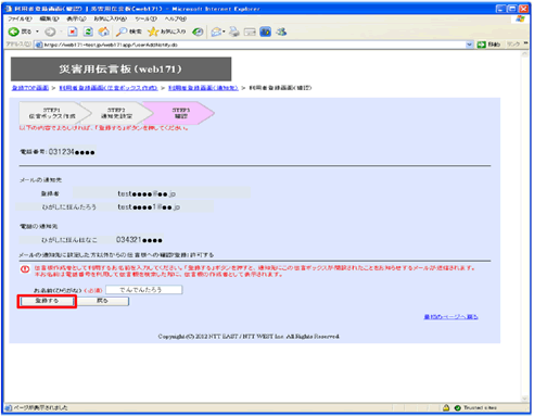 - <6>登録内容に誤りがないか確認して「登録する」ボタンをクリック
