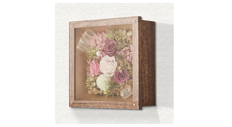 アンティークな色彩で柔らかな美しさを湛えたフラワーアレンジメントを、温かみのある木のフレームで包み、ご結婚や各種記念日はもちろん、ご昇進やご栄転、ご開店などのビジネスシーンにも幅広くお祝いの気持ちをお届けします。