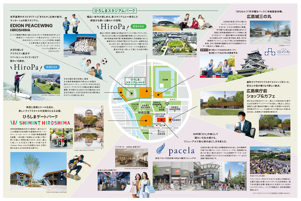 NTTアーバンソリューションズグループは、広島都心部の再開発を進めており、2023年3月開業の『ひろしまゲートパーク』をはじめとして、2024年8月には『ひろしまスタジアムパーク』、2025年3月には『広島城三の丸 第1期商業施設』、『県庁前SHOP&CAFE』が開業し、2025年10月には基町クレド・商業施設『パセーラ』がリニューアル開業しました。広島基町エリア一体での賑わい創出に取り組み、広島を世界に誇れる街として都市の魅力向上に努めています。