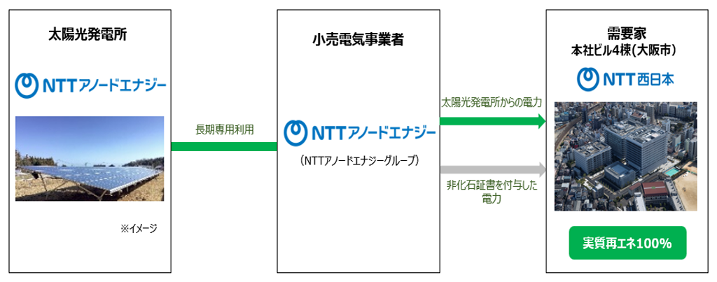 NTT西日本株式会社(本社:大阪府大阪市、代表取締役社長 北村 亮太、以下NTT西日本)は、サステナビリティ経営の象徴的な取り組みとして、本社ビルにおいてNTTアノードエナジー株式会社(本社:東京都港区、代表取締役社長 岸本 照之、以下NTTアノードエナジー)と連携し、再生可能エネルギー(以下、再エネ)を長期で調達するオフサイト型コーポレートPPA※1(以下、オフサイトPPA)を2026年4月1日(水)より導入を開始します。