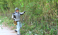 その後作業が始まり、参加者はイノシシ除けのフェンス周りに生い茂った雑草の刈り取りと竹林の伐採等を行いましたが、ワイヤーフェンスに絡み付いたつるを取り除くのは思いのほか難しく、炎天下での力仕事とあってすぐに汗だくになりました。